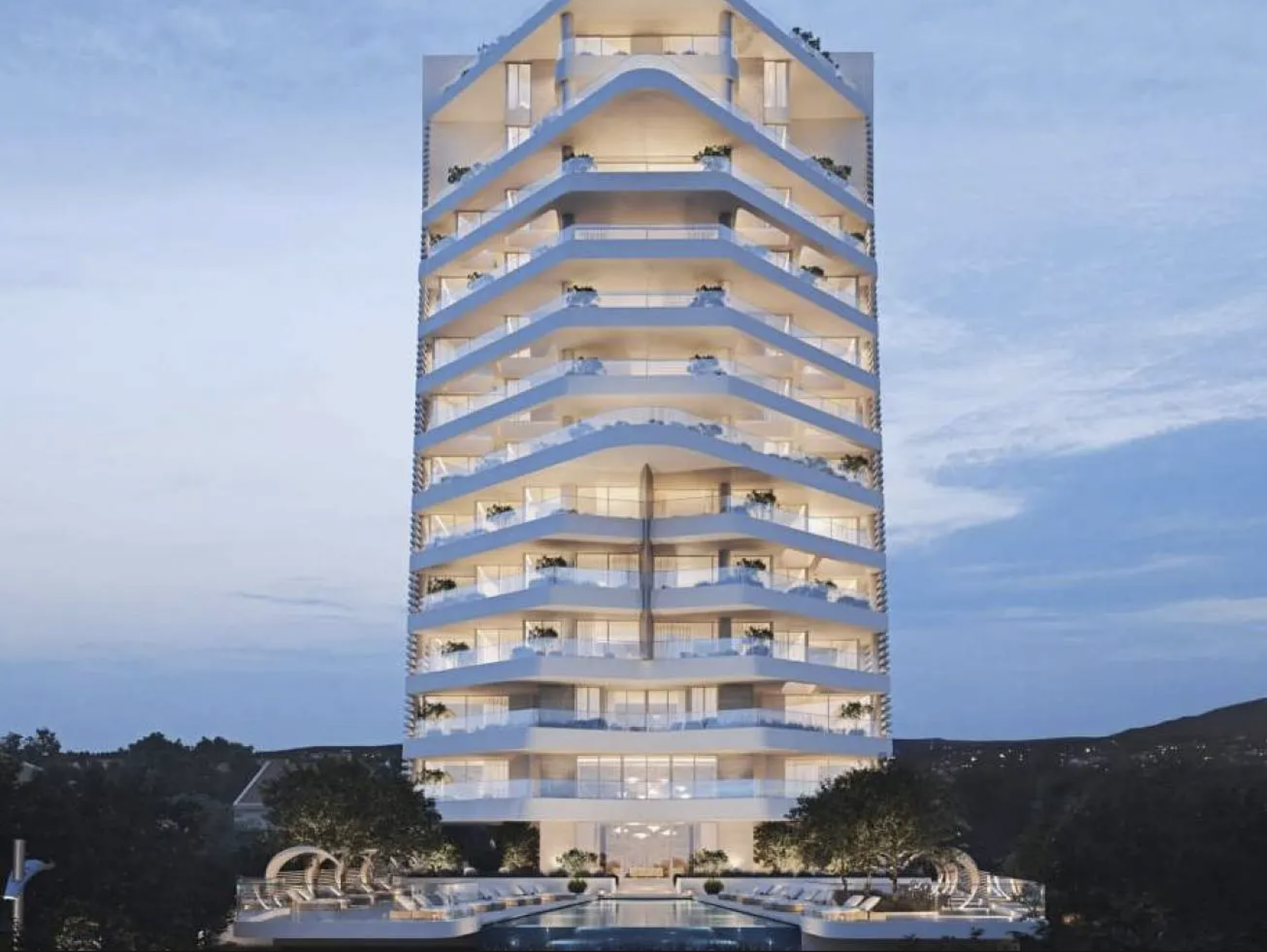 Standing 170 metres tall, One Tower is Europe’s tallest seafront residential skyscraper. With just 84 homes — including Sky Villas and a triplex penthouse — it blends five-star hospitality with privacy. Heated pools, spa, and landscaped lounges make it a symbol of elite living.